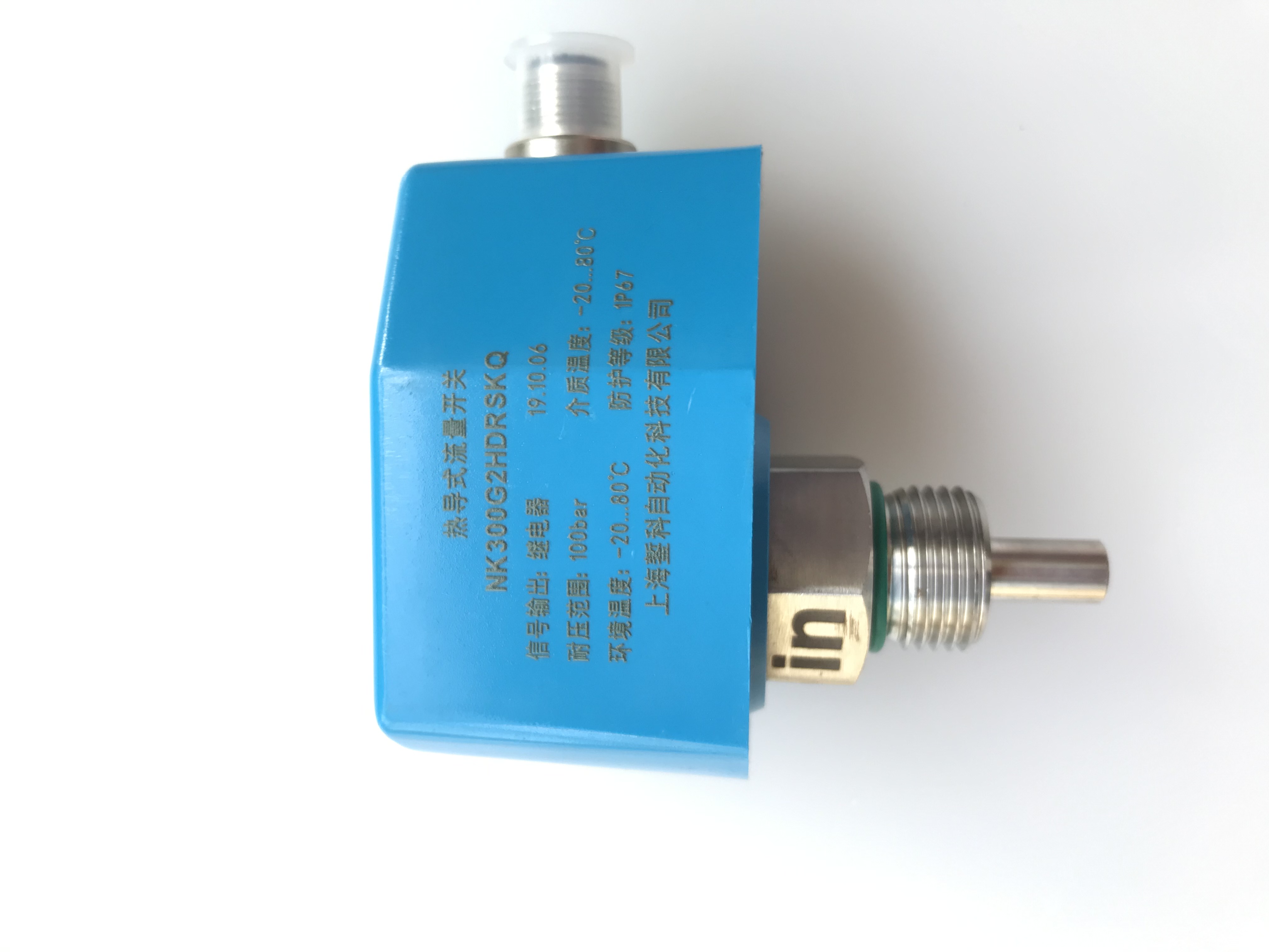 NOIKE熱導(dǎo)式流量開關(guān)是基于熱交換原理設(shè)計的。探頭內(nèi)置發(fā)熱模塊及感熱模塊,流量開關(guān)的熱傳導(dǎo)同介質(zhì)的流速密切相關(guān),測量時,由發(fā)熱模塊發(fā)出熱量,如果管道內(nèi)沒有介質(zhì)流動,則感熱模塊接收到的熱量是一個固定值,當(dāng)有介質(zhì)流動時,感熱模塊所接受到的熱量將隨介質(zhì)的流速變化而變化,感熱模塊將這溫差信號轉(zhuǎn)化成電信號,再通過處理器將其轉(zhuǎn)換為對應(yīng)的標(biāo)準(zhǔn)模擬量信號或接點(diǎn)信號輸出,流量開關(guān)通過這個信號對介質(zhì)的流速進(jìn)行顯示及控制。