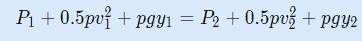 其中P1和P2分別是初始?jí)毫妥罱K壓力,p是水的密度,v1和v2分別是初始速度和最終速度,y1和y2分別是初始高度和最終高度。 從管道中心開始測量每個(gè)高度。